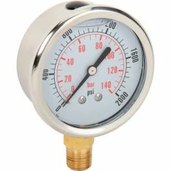 Pic Gauges 2-1/2" Vacuum Gauge, Liquid Filled, 2000 PSI, Stainless Case, Lower Mount, PRO-201L-254O