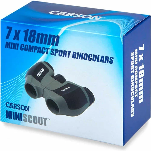 - The JD-718 MiniScoutâ„¢ from Carson Optical is a 7x18mm Ultra-Compact Binocular that is so portable you can bring it with you anywhere. It has a center focus knob with an independent right diopter adjustment for maximum focusing flexibility.