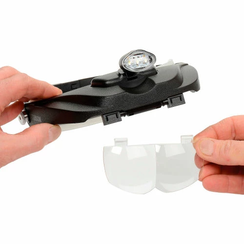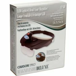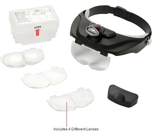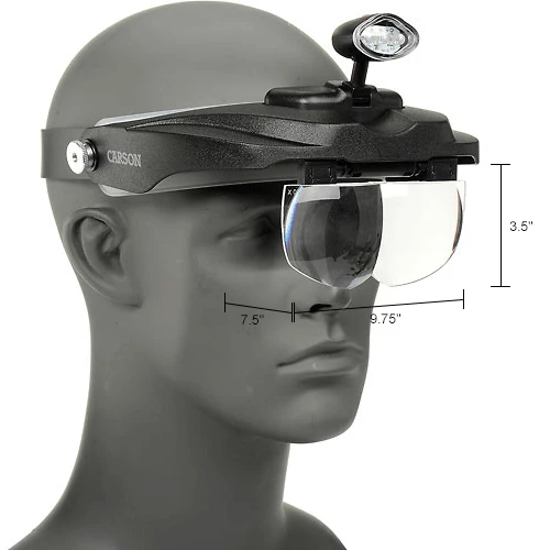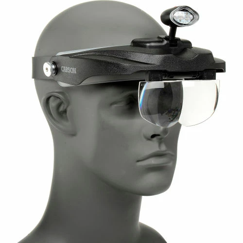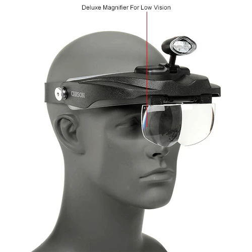 The CP-60 MagniVisorâ„¢ Deluxe from the Carson Optical PRO Series is a Hands Free, head-worn Magnifier with 4 different lenses; 1.5x, 2x, 2.5x, and 3x. It comes with an adjustable headband. The removable LED lamp can be used as a free standing light source. The MagniVisorâ„¢ Deluxe Magnifier is perfect for all hobbies and crafts! The MagniVisorâ„¢ Deluxe is the perfect Low Vision Aid.