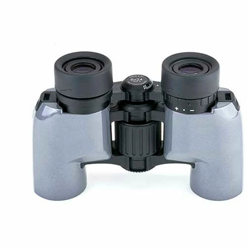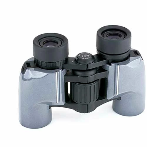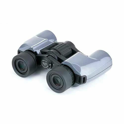 The Carson Mantaray (MR-824) 8x24mm porro prism binoculars are extremely compact and lightweight. The Mantaray binoculars feature an 8x power magnification with a 24mm objective lens diameter. Weighing less than a pound, these compact binoculars are perfect for travel, camping, hiking, bird watching, sporting events, concerts and other outdoor adventures. The Mantaray binoculars feature a centered focusing knob with twist down eye cups. These binoculars contain BAK-4 prisms and fully multi coated lenses which will guarantee extremely sharp and crystal clear images. They have a close focus feature of 9.8 feet making them great for bird watching and exploring nature. These metallic grey colored binoculars also feature a very stylish and ergonomic design. The Mantaray binoculars come included with a storage pouch, neck strap, protective eye cups and a lens cloth.