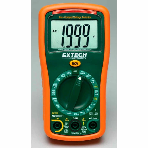 Combination manual ranging MultiMeter with built-in non-contact voltage detector. Measures AC/DC voltage, AC/DC current and resistance plus diode test and continuity beeper.