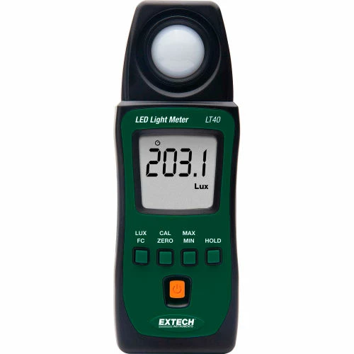 Extech LED light meters are used for monitoring and optimizing environmental light levels in buildings, schools and offices. LED lighting is being used more commonly, because they are less expensive, more energy efficient and brighter. Model LT40 measures the light intensity for white LED lights.