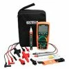 Full family of digital multimeters test AC Voltage, DC Voltage, Resistance, Continuity, Temperature, Diodes, and Batteries.