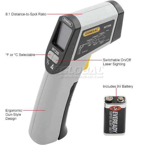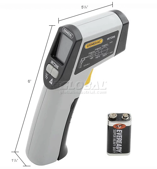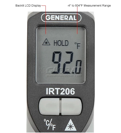 Ideal for most applications in HVAC/R, plumbing and heating, electrical, automotive and other industrial jobs. The new IRT206 “Heat SeekerTM” is a precision measuring device used for obtaining accurate temperatures instantaneously without having to contact the object being measured. It works by capturing and measuring the invisible infrared energy naturally emitted from all objects. It offers an easy and safe method to instantaneously measure surface temperatures of objects which are difficult or unsafe to contact. The “Heat Seeker” has a rugged, ergonomic design and features a backlit LCD display with built-in laser sighting. The IRT206 has a measurement range of -4° to 604°F (-20° to 317°C) and utilizes a switchable on/off laser pointer for target location. The practical distance-to-spot ratio of 8:1 is suitable for most consumer and commercial applications.