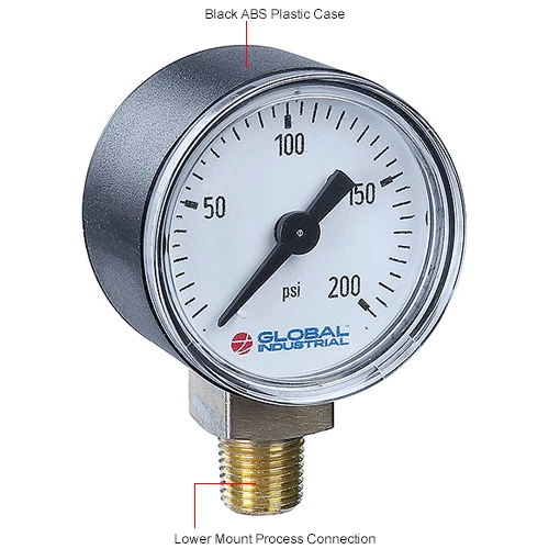 Global Industrial 1-1/2" Pressure Gauge, 200 PSI, 1/8" NPT LM, Plastic