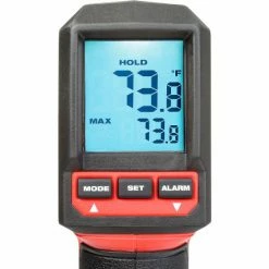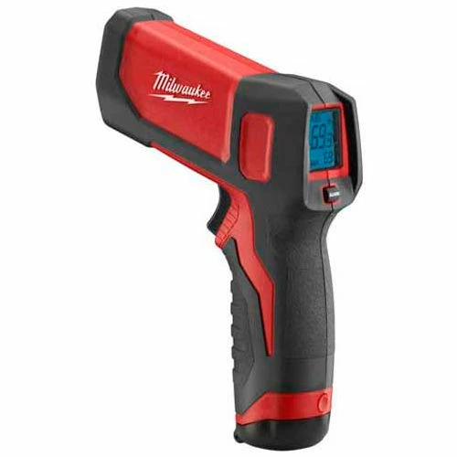 Heavy duty pistol grip infrared thermometer for professional residential, commercial and industrial applications. A great value for the money, the Laser TEMP-GUN™ is a terrific diagnostic tool to check for surface hot spots which are a clear indicator of electrical problems. Milwaukee 2267-20 Laser TEMP-GUN™ Thermometer features: temperature range of -22 to 662°F (-30 to 350°C); accurate to within 1.5%; displays temperature values to one tenth of a degree; response time of less than 500 milliseconds; emissivity of 0.95; equipped with hold and max value functions; measures a one (1) foot spot from ten (10) feet away; high contrast white on black display and backlight for easy reading; rugged over-molding for improved durability and user grip; includes three (3) AA batteries, and manual; covered by 5 year warranty. Nothing but HEAVY DUTY.