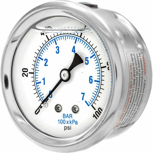 | Description | 2-1/2" Dial Glycerine Filled Pressure Gauge, Center Back Mount |