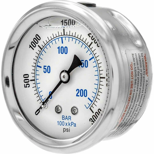 | Description | 2-1/2" Dial Glycerine Filled Pressure Gauge, Center Back Mount |