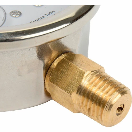 Global Industrial 2-1/2" Pressure Gauge, 15 PSI/KPA, 1/4" NPT LM, Polished Brass
