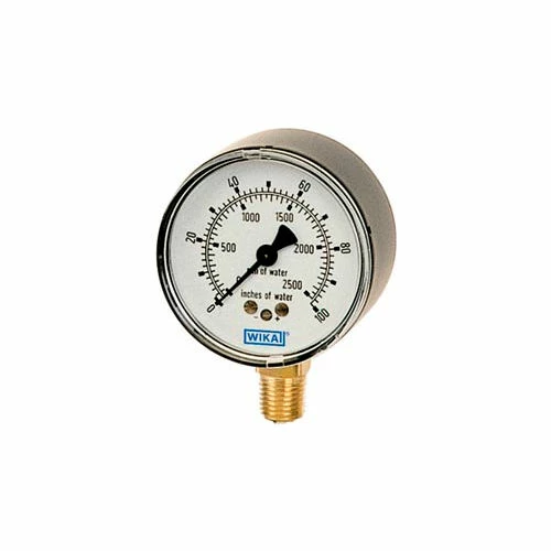 WIKA Type 6X1.10 low pressure gauges are extremely sensitive and highly accurate. The capsule element pressure system is designed to measure pressure and vacuum of gaseous media from as low as 10 H2O to 275 H2O (10 psi). The finely polished nickel-silver pinion gear and shaft of the movement ensure repeatable accuracy.